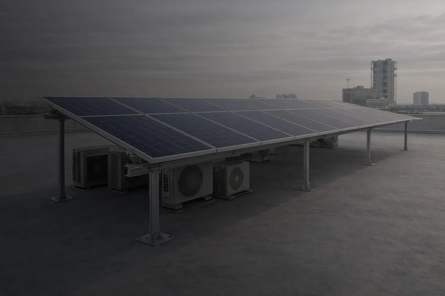 Solar panels raised on aluminium or hybrid columns above your existing rooftop. The roof below stays completely clear — HVAC units keep running, generators stay accessible, plant rooms stay open, and the terrace stays usable. Generate power above without sacrificing the roof below.
