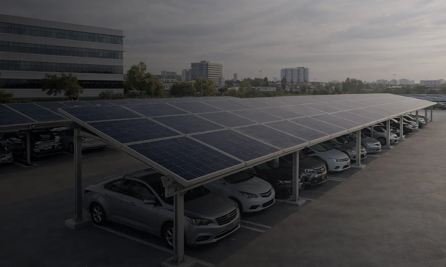 The car park or yard keeps functioning exactly as before. Solar generation is added on top of existing land use — not instead of it.